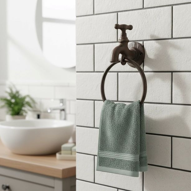 Cast Iron Faucet Towel Holder Industrial Farmhouse Bath Accent