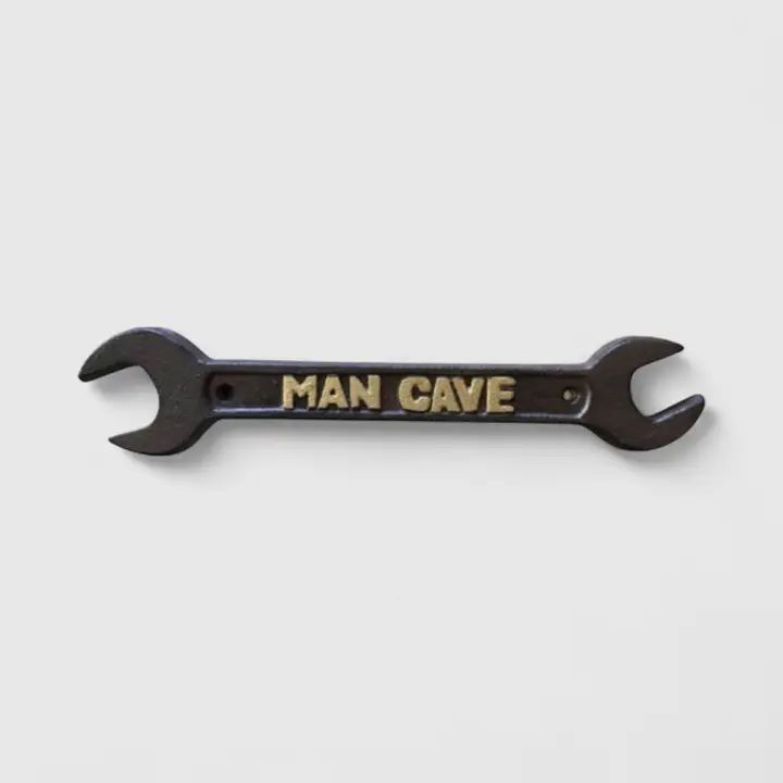 Cast Iron Spanner Wrench Man Cave Plaque, Rugged Industrial Decor