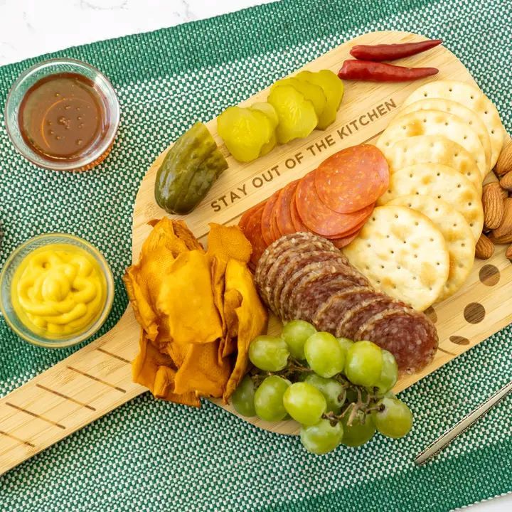POSTGAME PERFECTION: Finish a day on the courts with this Set of 2 Pickleball Charcuterie Paddleboards! These finely crafted paddles help you serve up delicious cheese, crackers, fruit, appetizers, and more