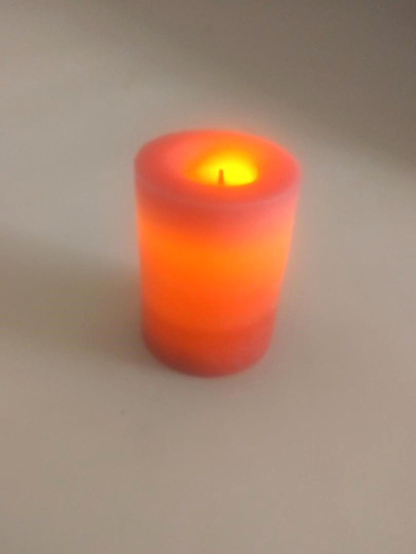 Flameless Candle Rustic Cinnamon. This realistic LED candle adds the warmth of flickering light and can be used over and over again for endless enjoyment. A simple, stylish way to spice up your decor with a punch of color and the playfully sweet scent of cinnamon candy. On/off switch on the bottom. Takes 3 AAA batteries (not included)