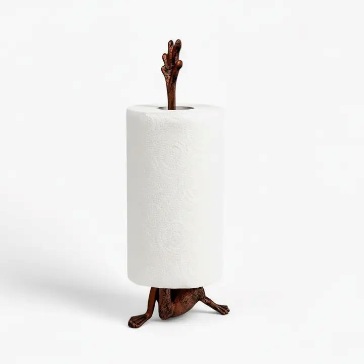 Frog Paper Towel Holder Weathered Copper Cast Iron Decor