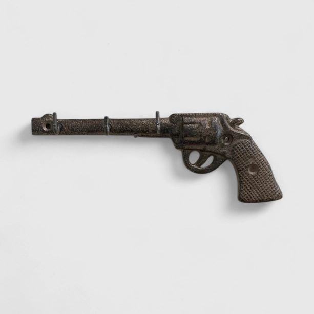 Authentic Western Design: Features a vintage revolver motif with multiple hooks, ideal for displaying your love of the Old West.