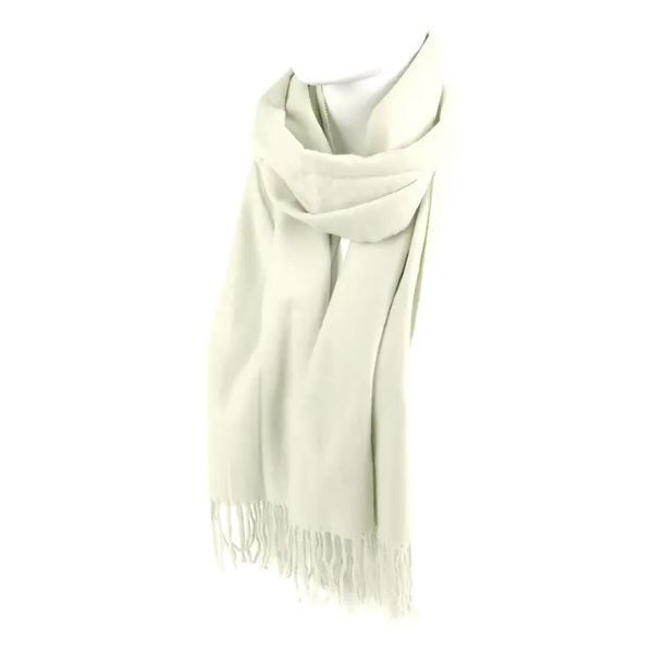 100% Acrylic Scarf with tassels but has the feel of Cashmere. In white 12in w x 66in L.