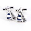 Blue and White Sail Boat Design Rhodium Plated Cufflinks