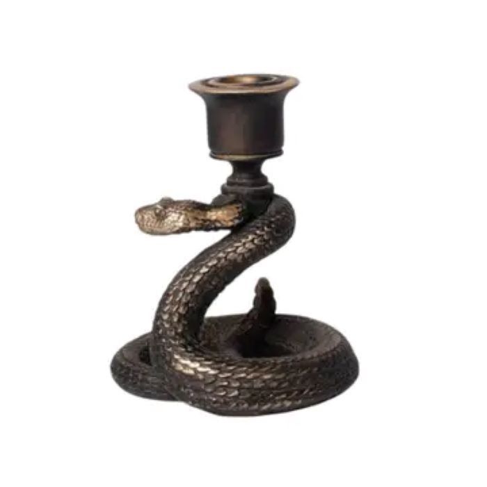 Death Rattle Candlestick Holder, Poly resin rattlesnake candle holder. 3.9" x 3.7" x 4.5" (candle not included)