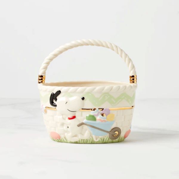 Snoopy and his bff Woodstock are EGGcited about Easter! The perfect gift for Peanuts lovers, this porcelain Easter basket features Snoopy on one side and Woodstock on the other, both preparing for springtime fun. It's the cutest way to display treats from the Easter bunny! 6.5 x 4.5 x 6.75in H.