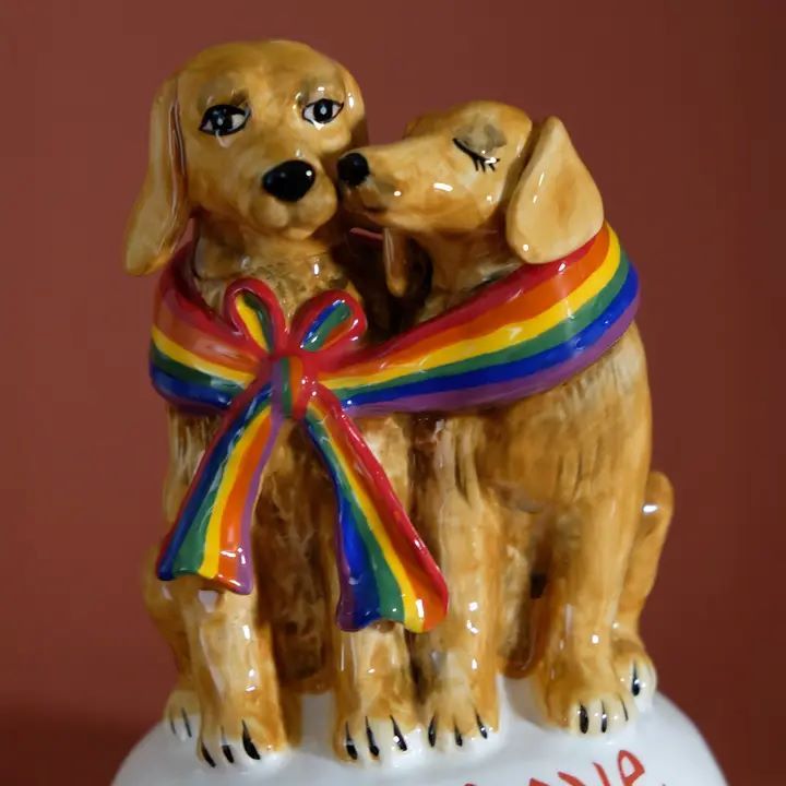 Features 2 Golden Retrievers side by side wrapped with a rainbow pride sash. Dimensions5 x 4.5 x 6.3 in