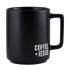 These sleek matte mugs have a large handle and are stackable for easy storage.