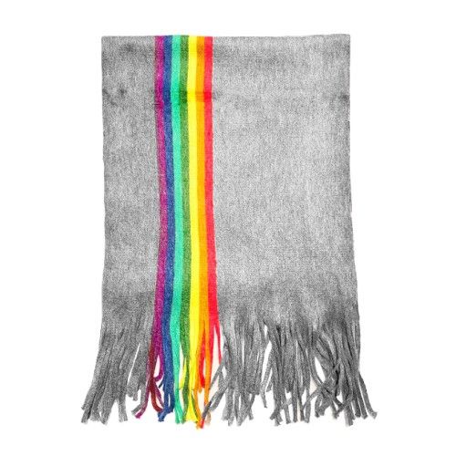 Rainbow Stripe Acrylic Scarf  Light Grey