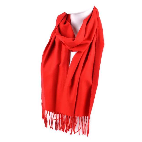 100% Acrylic Scarf with tassels but has the feel of Cashmere. In RED 12in w x 66in L.