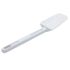 Spoon Shaped Spatula manufactured by Rubbermaid Commercial Products Division and intended for food service use. The material used is a thermoplastic that is bailable and dishwasher safe and bonded to the handle to help prevent germ growth. NSF certified.